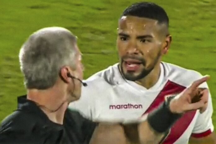 Sin embargo, el árbitro Anderson Daronco no se detuvo para analizar la jugada en el VAR. Todavía en la cancha se observa que Callens se le acerca para pedirle que revise la jugada.