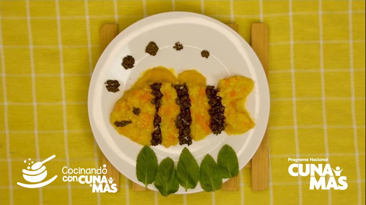 A través del programa Cocinando con Cuna Más, disponible en las redes sociales institucionales, se compartió con las madres, padres y cuidadores principales de niñas y niños la receta de una papilla a base de quinua con verduras y sangrecita. Briggitte Pastor, socia de cocina del programa social que presentó este potaje en la segunda temporada del espacio culinario, informó que la receta fue una de las ganadoras del Concurso de papillas nutritivas ricas en hierro para niñas y niños menores de un año, organizado en el 2020 por Cuna Más.