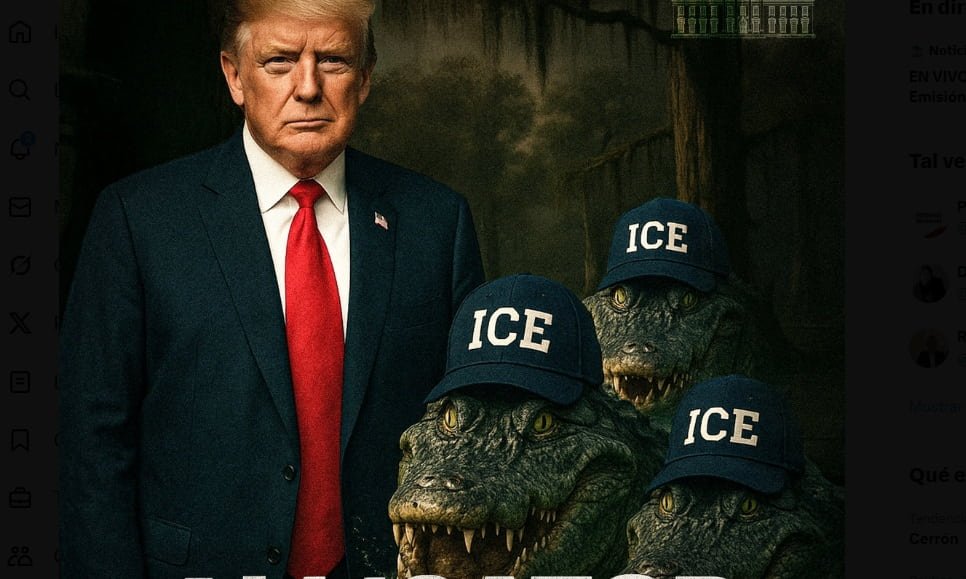WASHINGTON D.C. — El 1 de julio de 2025, la Casa Blanca generó una ola de reacciones tras publicar en su cuenta oficial de Twitter una imagen del presidente Donald Trump junto a tres caimanes que portan gorras con las siglas de ICE (Immigration and Customs Enforcement). La imagen incluye el lema “ALLIGATOR ALCATRAZ: MAKE AMERICA SAFE AGAIN” y hace referencia directa al nuevo centro de detención migratoria inaugurado en los pantanos de los Everglades, en Florida.