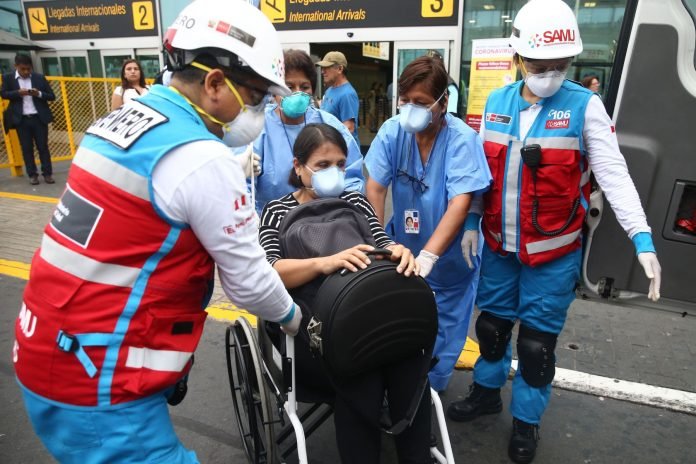 Desde el Aeropuerto Internacional Jorge Chávez, el director de Epidemiología del Minsa, Manuel Loayza, dijo que los síntomas de esta enfermedad son: fiebre de 38 grados, escalofríos, tos, estornudos, dolor de garganta, malestar intenso, respiración rápida y/o sensación de falta de aire.