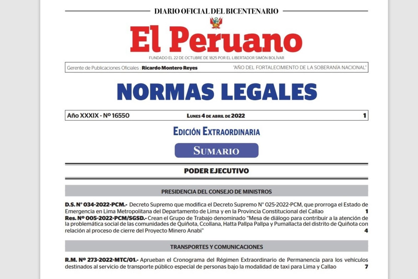 La norma, publicada en una edición extraordinaria del cuadernillo de Normas Legales del Diario Oficial El Peruano, está firmada por el Presidente de la República, Pedro Castillo Terrones, y por el presidente del Consejo de Ministros, Aníbal Torres Vásquez.