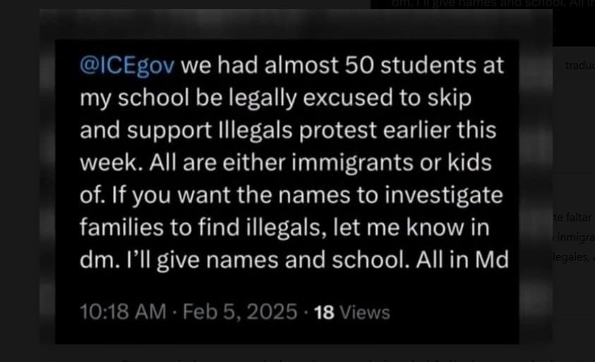 El escándalo surgió tras la difusión de un mensaje publicado por el profesor en la red social X (anteriormente Twitter), donde etiquetó a @ICEgov y afirmó que cerca de 50 estudiantes de su escuela habían sido autorizados para faltar a clases y asistir a una protesta pro-inmigrantes. En su publicación, el docente expresó su disposición para proporcionar los nombres y la escuela de los alumnos con el fin de que ICE pudiera investigarlos.