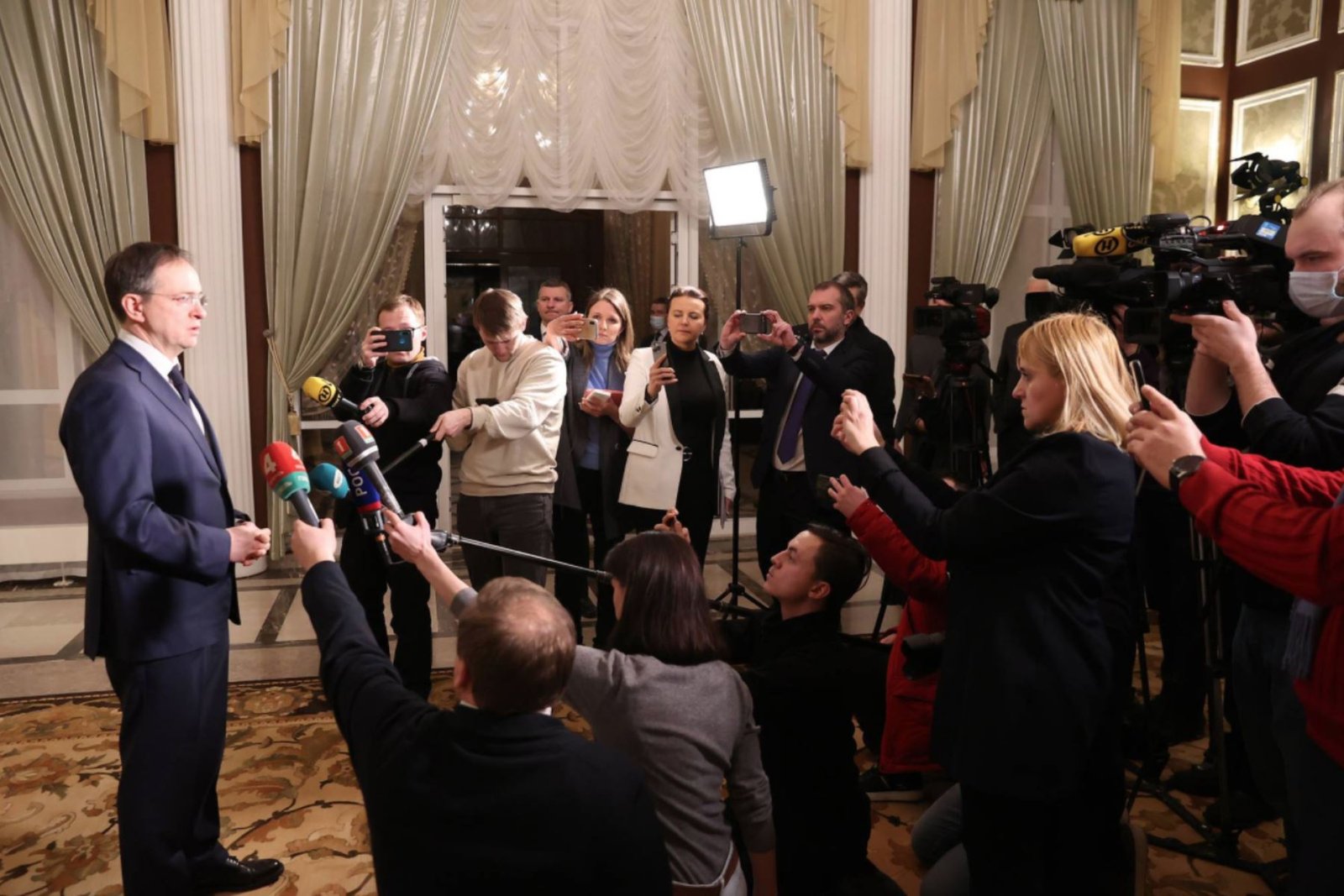 La delegación rusa pone tres temas sobre la mesa: «el aspecto militar-técnico, el humanitario e internacional, así como la política», dijo Medinski sin dar más detalles.