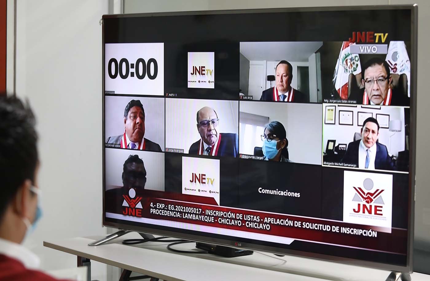 El Pleno del Jurado Nacional de Elecciones (JNE) revisó en audiencia pública virtual los primeros recursos de apelación interpuestos por diferentes partidos políticos contra lo resuelto en primera instancia por los Jurados Electorales Especiales (JEE) habilitados para las Elecciones Generales 2021 (EG 2021).