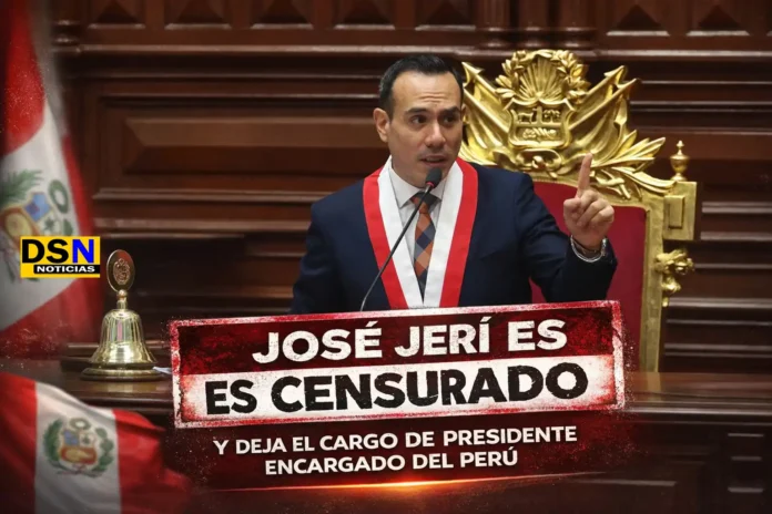 El pleno del Congreso —Congreso de la República del Perú— aprobó la censura contra José Jerí, lo que puso fin de forma inmediata a su condición de presidente del Parlamento y, por extensión constitucional, a su papel como presidente encargado del país.