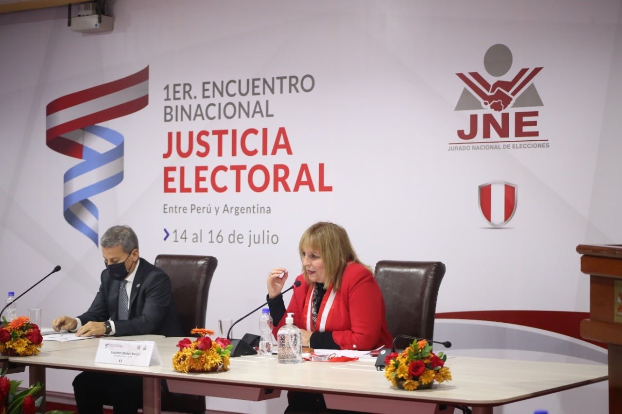 Al clausurar el Primer Encuentro Binacional de Justicia Electoral Perú-Argentina, en representación del titular del JNE, Jorge Luis Salas Arenas, la magistrada destacó los resultados de los tres días de trabajo del cónclave internacional, en el que participaron altas autoridades de ambas entidades.
