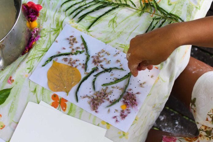 El “Laboratorio de arte y naturaleza para niñxs” genera un espacio de creación a partir de la utilización de materiales orgánicos, para acercar a lxs niñxs a la valoración del medioambiente y buscar posibilidades eco-amigables para hacer arte.