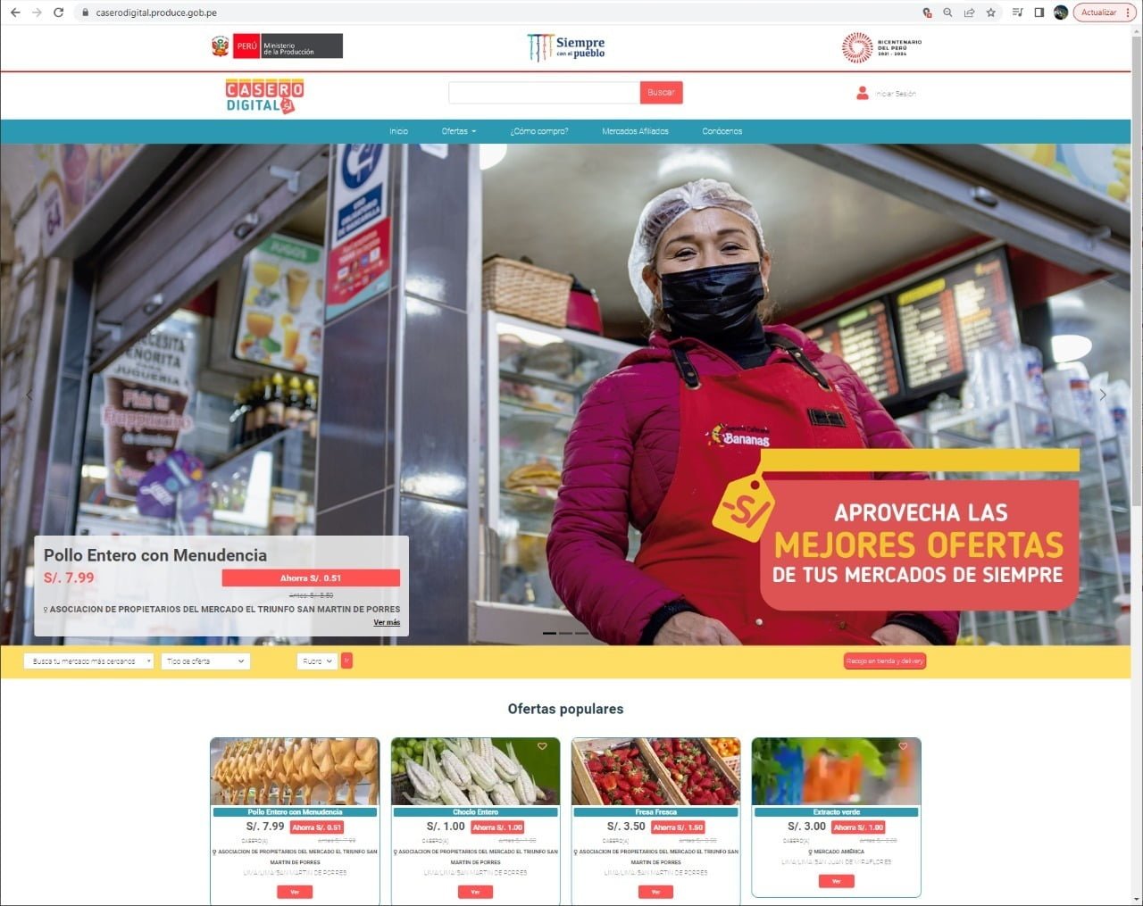 Con el propósito de impulsar la reactivación económica de los mercados de abastos y generar el incremento de las ventas de las micro y pequeñas empresas – MYPE, el Ministerio de la Producción – PRODUCE, junto al Programa de las Naciones Unidas para el Desarrollo (PNUD), lanzan «Casero Digital» (www.caserodigital.pe) una plataforma web gratuita que facilitará la venta de los comerciantes de los mercados de abastos, a nivel nacional, quienes podrán ofertar sus productos y servicios, de manera ilimitada.
