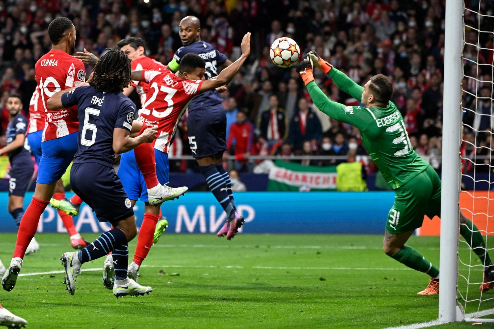 Pese a las críticas recibidas por el planteamiento ultradefensivo de Diego Simeone en la ida (donde el Atlético no disparó una sola vez al arco rival), el técnico argentino tampoco fue mucho más valiente en su estadio, sobre todo en la primera parte, donde la única ocasión de peligro fue para el City, con un disparo al palo del alemán Ilkay Gündogan (30).