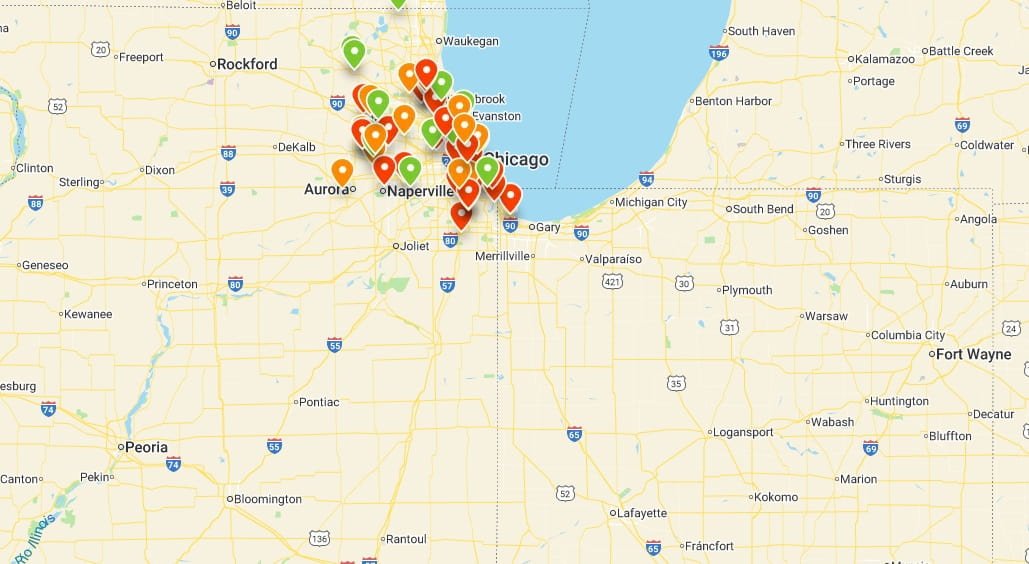 - Suburbios residenciales (Northbrook, Oak Lawn, Montgomery).