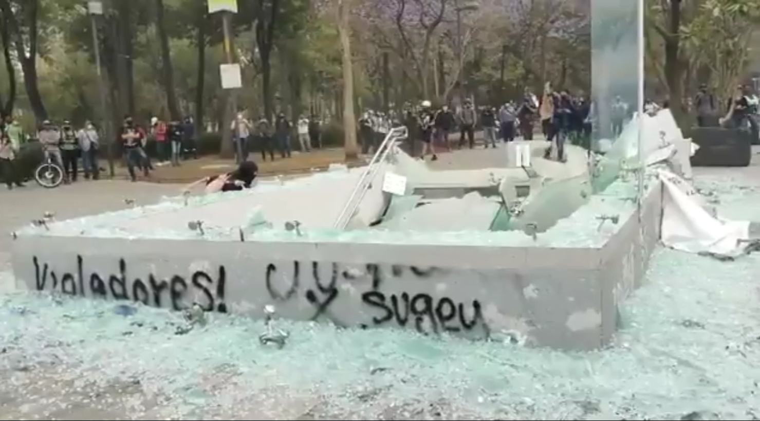 Durante la marcha por el Día de la Mujer en México, se destruyó el acceso de cristal a la entrada de la Estación de Hidalgo de la Línea 3 del Metro, en la avenida Juárez en el centro de CDMX.