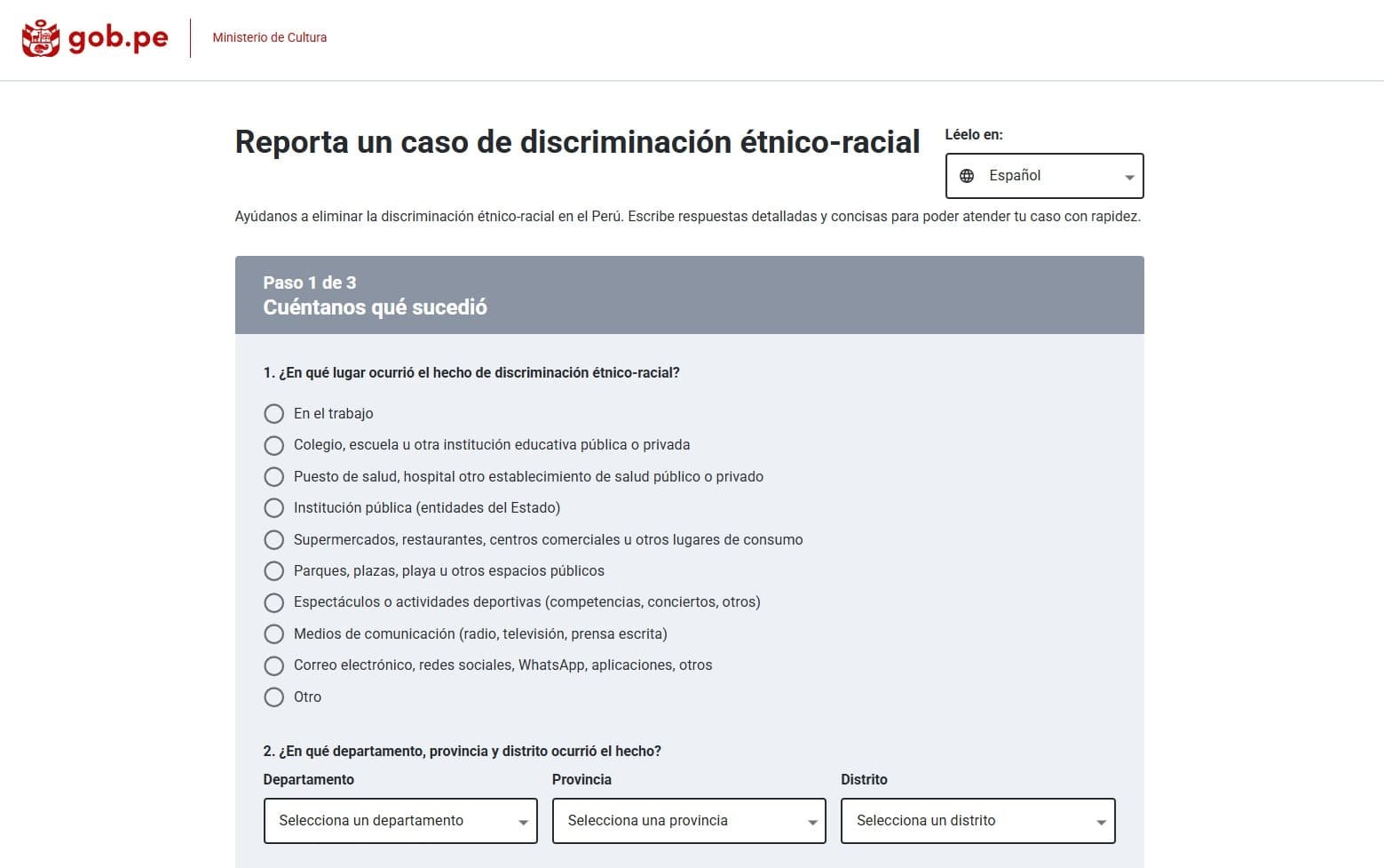 - Correo institucional: alertacontraelracismo@cultura.gob.pe