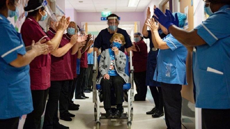 Una británica de 90 años se convirtió en la primera paciente del mundo en recibir la vacuna contra el covid-19 desarrollada por Pfizer y BioNTech, dentro de una campaña de vacunación lanzada por el Reino Unido.