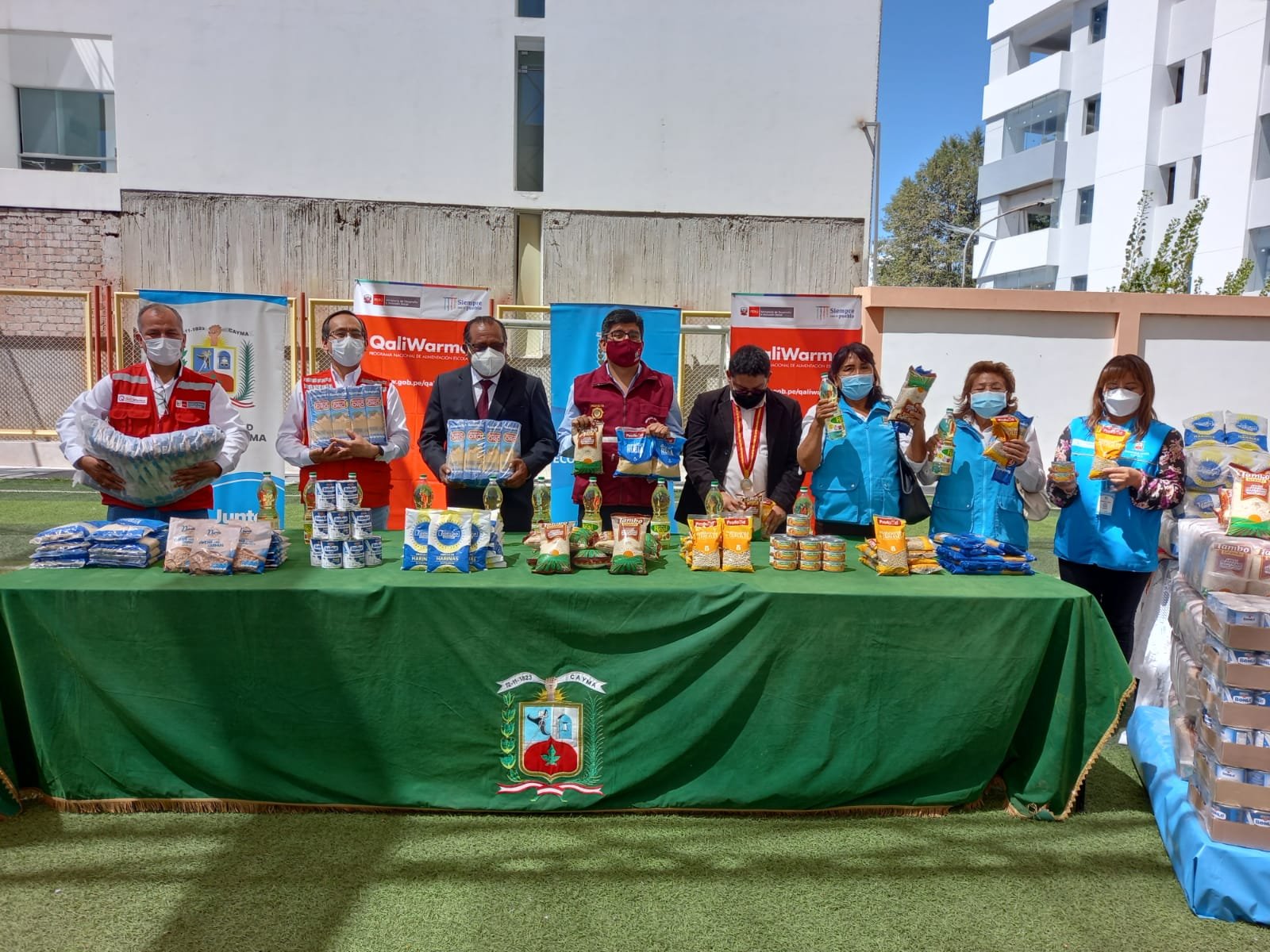 Durante las entregas participaron las autoridades de las comunas de Cayma y Mariano Melgar. Los productos servirán para la atención de las ollas comunes durante un periodo de 150 días.