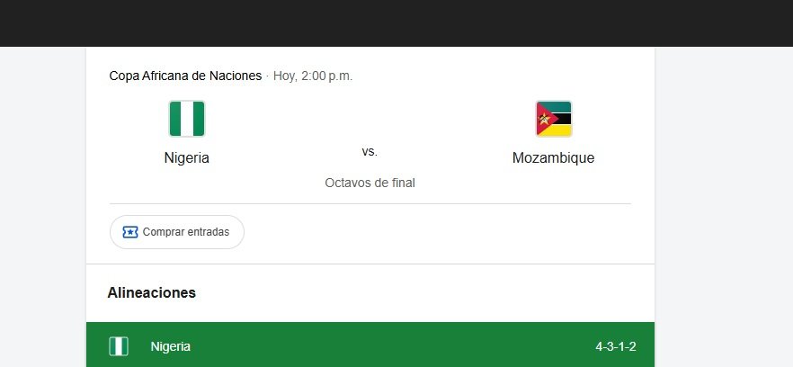 La Copa Africana de Naciones 2025 continúa definiendo a sus clasificados a los cuartos de final y, en esta etapa decisiva, Nigeria y Mozambique protagonizan un cruce clave por el pase a la siguiente ronda del torneo continental.