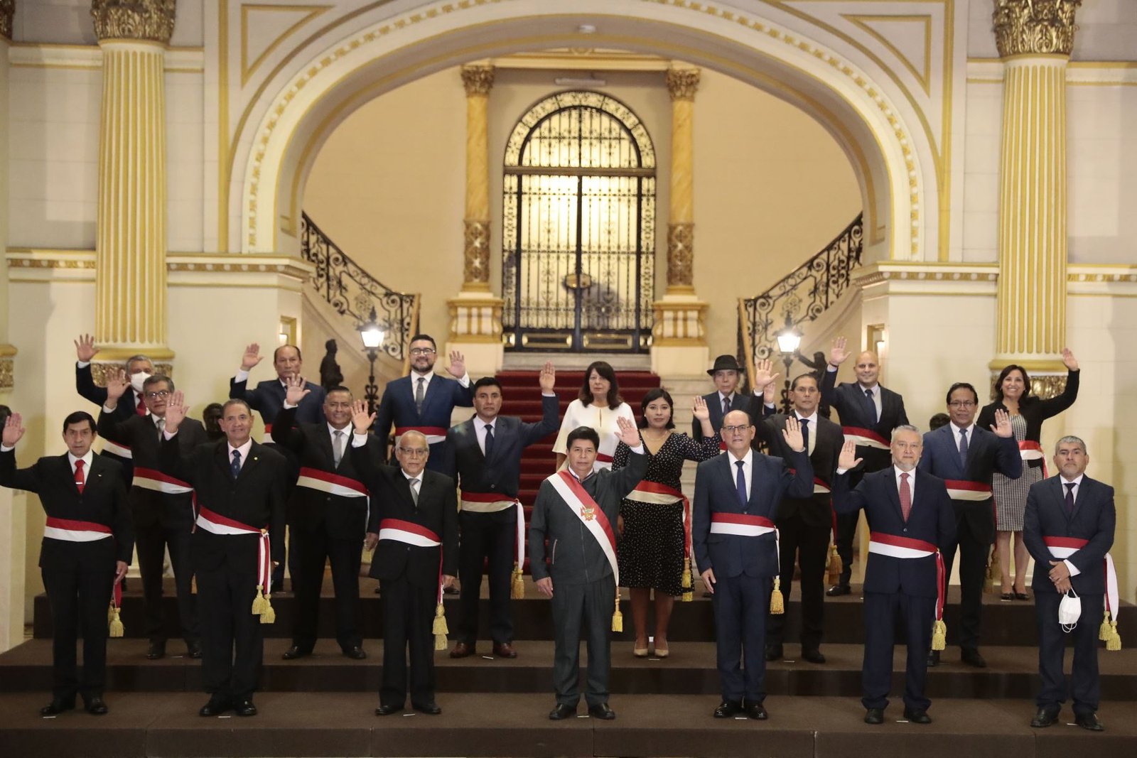 El Poder Ejecutivo oficializó hoy el nombramiento del nuevo Gabinete Ministerial, cuyos integrantes prestaron juramento ante el Presidente de la República, Pedro Castillo, en una ceremonia celebrada en la víspera.