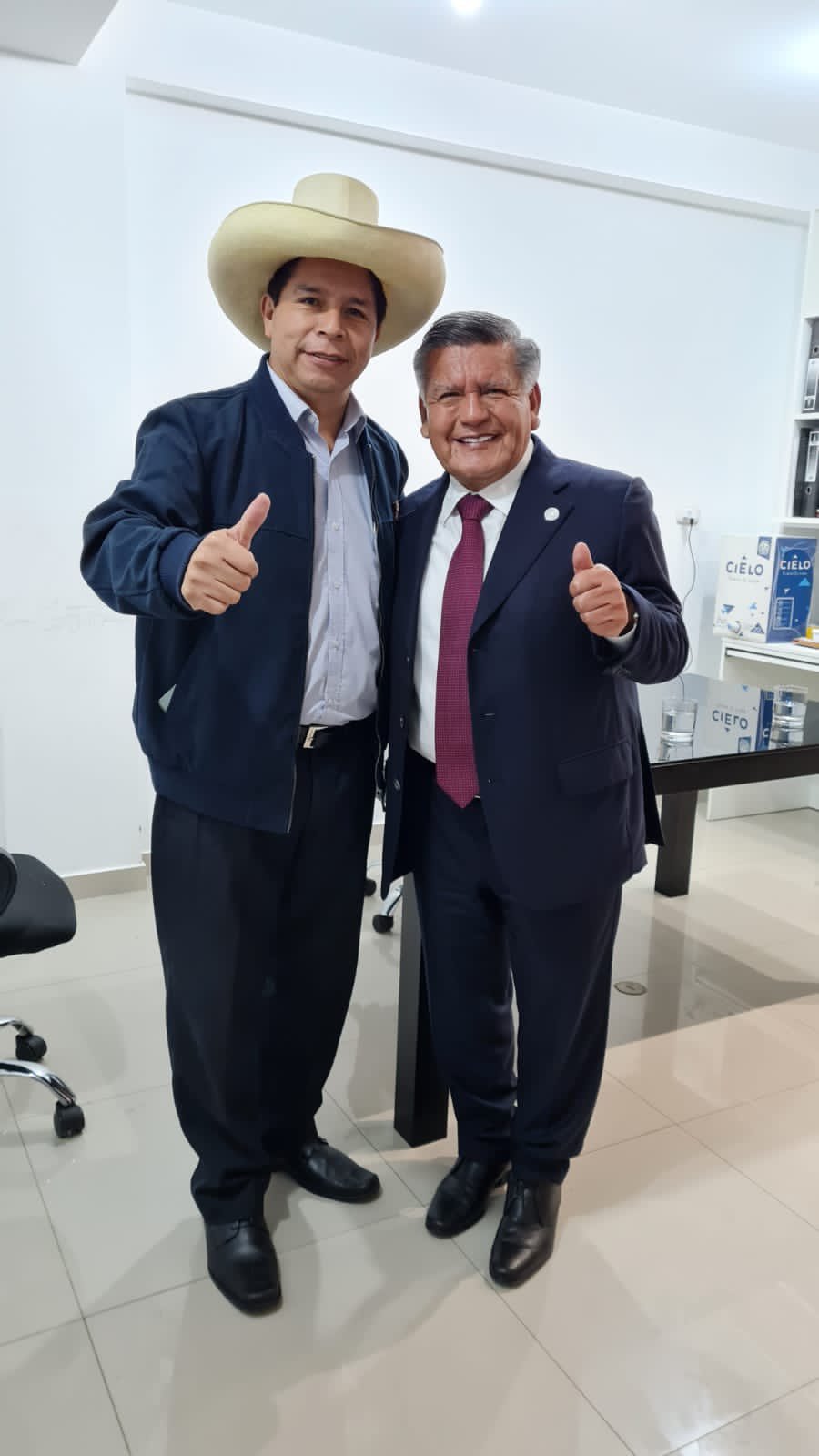 «He venido a felicitar al presidente Pedro Castillo y luego a decirle que tendrá todo el respaldo de parte de la bancada de APP», declaró a la prensa tras reunirse con el mandatario electo en Breña.