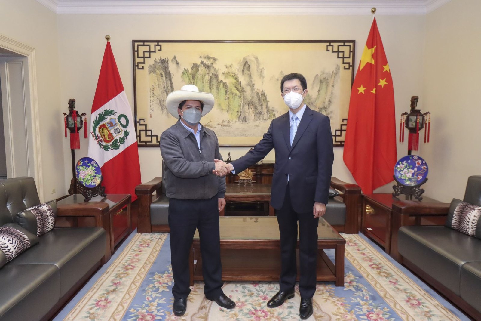 El candidato presidencial por Perú Libre, Pedro Castillo, sostuvo una reunión con el embajador de la República Popular China en el Perú, Liang Yu.