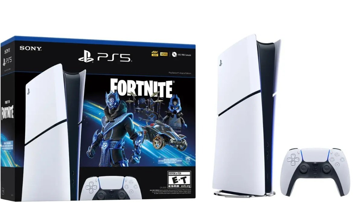 En Best Buy, puedes encontrar el paquete Sony – PlayStation5 Slim Console Digital Edition – Fortnite Cobalt Star Bundle – White por $374.99, con excelentes reseñas de usuarios que destacan su calidad y precio competitivo.