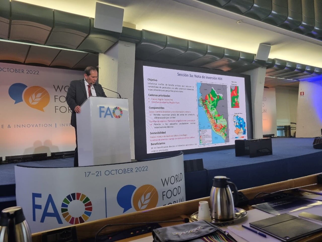 El ministro de la Producción, Jorge Prado Palomino, participó en el Foro de Inversiones de la Iniciativa Mano de la Mano de la Organización de las Naciones Unidas para la Alimentación y la Agricultura (FAO), que se celebró en Roma, los días 18 y 19 de octubre, durante el desarrollo del Foro Mundial de la Alimentación 2022.