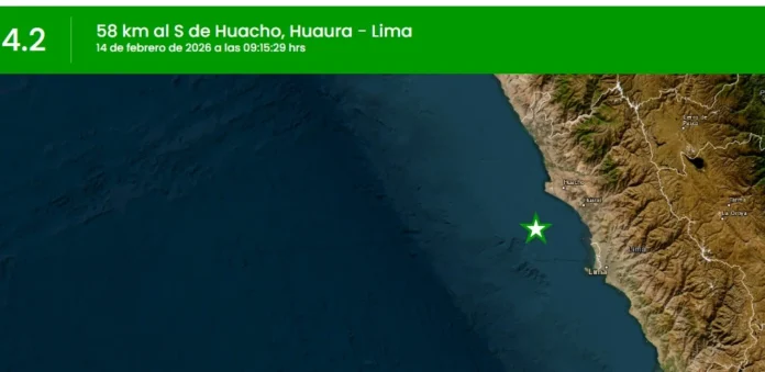 Un sismo de magnitud 4.2 remeció esta mañana la zona centro del país, según el reporte oficial del Instituto Geofísico del Perú (IGP). El movimiento telúrico ocurrió a las 09:15:29 hora local, con epicentro ubicado a 58 kilómetros al sur de la ciudad de Huacho, en la provincia de Huaura, región Lima.