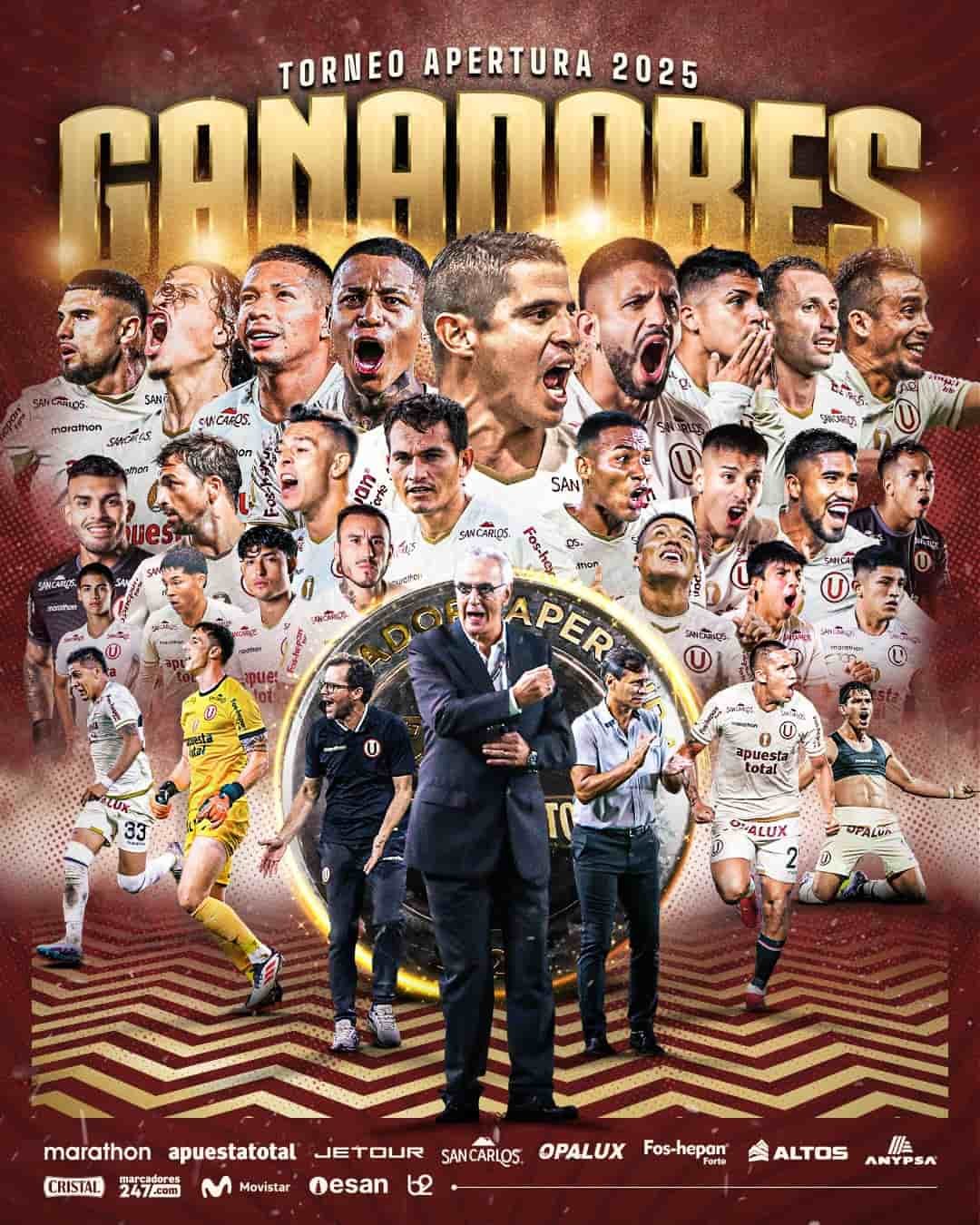 Lima, 13 de julio de 2025 — Universitario de Deportes se consagró como ganador del Torneo Apertura 2025 de la Liga 1 Perú tras empatar 0-0 frente a Los Chankas en el Estadio Monumental, logrando el objetivo con 39 puntos, dos más que su clásico rival, Alianza Lima.