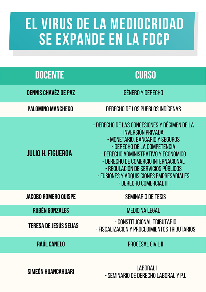 Y el problema no solo estaría ocurriendo en la mencionada facultad, puesto que Banesa Pérez, Secretaria Académica del Centro Federado de Derecho y Ciencia Política, nos contó que: “Existe una situación similar en la Facultad de Letras, dado que también han quedado muchas plazas desiertas en su proceso de contratación y resulta más complejo, pues sus clases virtuales están en marcha desde hace ya un par de semanas. Además, su Centro Federado y Centros de Estudiantes han denunciado a su Decano ante la SUNEDU por sus prácticas antiestudiantiles desde que asumió su cargo”.